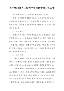 方案旨在加强大学生村官队伍建设,提升其服务基层能力,促进农村发展,如何有效实施?下面是网友整理分享的关于到村社区工作大学生村官管理工作方案相关资料,供大家学习参考,喜欢就分享吧!