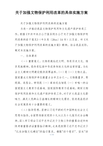 加强文物保护利用,需完善法律体系,加大资金投入,推广科技应用,提升社会参与度,如何有效实施?以下由网友整理分享的关于加强文物保护利用改革的具体实施方案相关文档,供您学习参考,喜欢就分享吧!