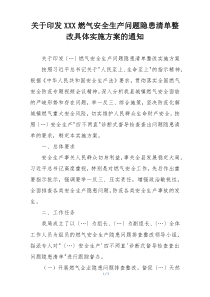 通知要求各单位对照燃气安全生产问题隐患清单,制定具体实施方案,落实整改措施,确保安全。下面是小编为您整理的关于印发XXX燃气安全生产问题隐患清单整改具体实施方案的通知范例,仅供参考,希望对您有所帮助。
