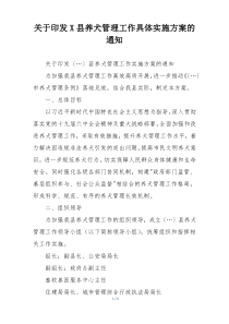 为加强养犬管理,维护公共安全和环境卫生,X县制定并发布了具体实施方案。下面是小编为您整理的关于印发X县养犬管理工作具体实施方案的通知范例,仅供参考,希望对您有所帮助。