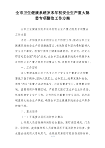 全市卫生健康系统开展岁末年初安全生产重大隐患专项整治,确保医疗环境安全稳定。公文包网友为您分享整理的“全市卫生健康系统岁末年初安全生产重大隐患专项整治工作方案”范文资料,以供您参考学习之用,希望喜欢。