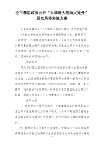 全市开展基层政务公开调研 推动提升活动 制定详细方案 组织实施 评估成效 及时调整策略 保障透明度和参与度。下面是网友整理编辑的全市基层政务公开“大调研大推动大提升”活动具体实施方案相关范文,供大家参考学习,喜欢就下载支持!