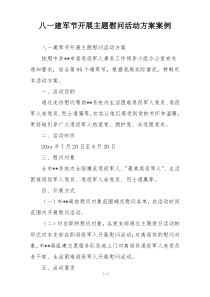 组织慰问团走访军营送上节日祝福与生活物资支持军队建设句号公文包网友为您分享整理的“八一建军节开展主题慰问活动方案案例”范文资料,以供您参考学习之用,希望喜欢。
