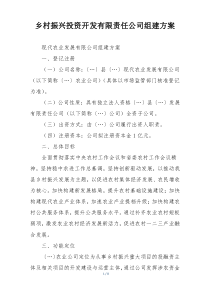 乡村振兴投资开发有限责任公司旨在整合资源促进乡村经济发展,通过多元化投资支持农业现代化和农村基础设施建设。以下由网友整理分享的“乡村振兴投资开发有限责任公司组建方案”相关材料,便您学习参考,喜欢就分享给朋友吧!