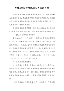 加强监测预警,提升应急响应,推进综合治理,保障人民生命财产安全!公文包网友为您分享整理的“乡镇2025年度地质灾害防治方案”范文资料,以供您参考学习之用,希望喜欢。