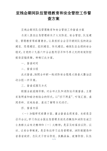 亚残会期间加强队伍管理教育和安全管控工作,确保措施到位,责任明确,监督有效。以下由网友整理分享的“亚残会期间队伍管理教育和安全管控工作督查方案”相关材料,便您学习参考,喜欢就分享给朋友吧!