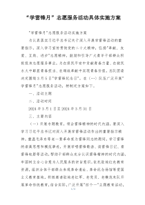 组织志愿者深入社区学校开展助老扶幼环保宣传等活动促进社会和谐.公文包网友为您分享整理的““学雷锋月”志愿服务活动具体实施方案”范文资料,以供您参考学习之用,希望喜欢。