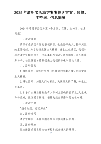 清明祭祖活动结合线上直播与线下参与,预算控制在五万元内,主持词温馨感人,信息简报详尽清晰,活动策划是否全面?以下是阿拉网友分享的“2025年清明节活动方案案例含方案、预算、主持词、信息简报”,供您学习参考,希望有所用途!