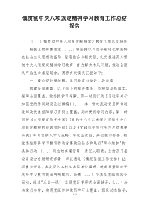 深入学习中央八项规定精神,强化作风建设,提升工作效能,全体成员积极参与,成效显著!下面是小编为您整理的镇贯彻中央八项规定精神学习教育工作总结报告范例,仅供参考,希望对您有所帮助。