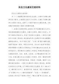 队伍文化建设需注重核心价值观塑造,加强内部沟通与协作,培养团队精神,提升整体凝聚力。以下由网友整理分享的队伍文化建设交流材料相关文档,供您学习参考,喜欢就分享吧!