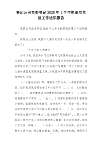 集团公司党委书记强化基层党建,推进组织建设,提升党员素质,增强服务意识,推动党建工作与业务深度融合。以下是阿拉网友分享的“集团公司党委书记2025年上半年抓基层党建工作述职报告”,供您学习参考,希望有所用途!