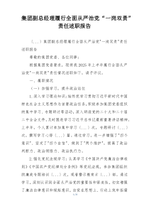 集团副总经理认真履行全面从严治党“一岗双责”,加强党风廉政建设,推动业务与党建深度融合,成效显著!下面是网友整理分享的集团副总经理履行全面从严治党“一岗双责”责任述职报告相关资料,供大家学习参考,喜欢就分享吧!
