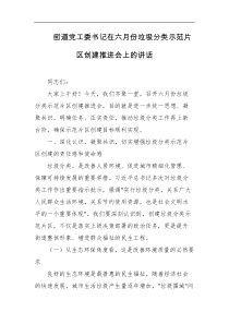 街道党工委书记强调,要强化责任落实,加大宣传力度,确保垃圾分类示范片区创建工作顺利推进。以下由公文包网友为您分享的范文资料,供您参考学习之用。