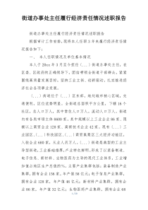 街道办事处主任在任期内积极促进地方经济发展,有效管理财政,推动重点项目实施,提升民生福祉。公文包网友为您分享整理的“街道办事处主任履行经济责任情况述职报告”范文资料,以供您参考学习之用,希望喜欢。