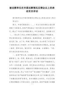 被巡察单位高度重视巡察反馈意见,将迅速行动,全面整改,确保各项措施落实到位。下面是网友整理编辑的被巡察单位在市委巡察情况反馈会议上的表态发言讲话相关范文,供大家参考学习,喜欢就下载支持!
