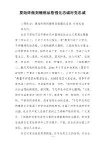 锤炼品格,强化忠诚,坚定信念,对党绝对忠诚,矢志不渝奋斗,为实现中华民族伟大复兴贡献力量。以下是阿拉网友分享的“要始终做到锤炼品格强化忠诚对党忠诚”,供您学习参考,希望有所用途!