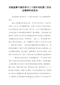 纪检监察干部深入学习领会全会精神,强化责任担当,坚定理想信念,提升履职能力,推动全面从严治党向纵深发展。下面是小编为您整理的纪检监察干部在学习二十届中央纪委二次全会精神时的发言范例,仅供参考,希望对您有所帮助。