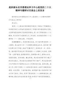 组织部长强调深入学习党的二十大精神,加强理论武装,推动工作落实,如何更好地将精神转化为实际行动?以下由网友整理分享的“组织部长在市委理论学习中心组党的二十大精神专题研讨交流会上的发言”相关材料,便您学习参考,喜欢就分享给朋友吧!