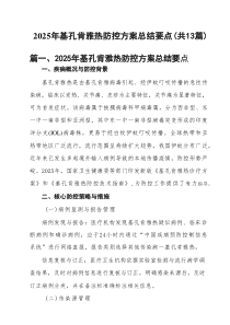 加强监测预警 提升防控能力 强化国际合作 推动疫苗研发 加大健康教育力度 确保公共卫生安全 多方努力共克时艰下面是网友整理编辑的2025年基孔肯雅热防控方案总结要点(共13篇)相关范文,供大家参考学习,喜欢就下载支持!