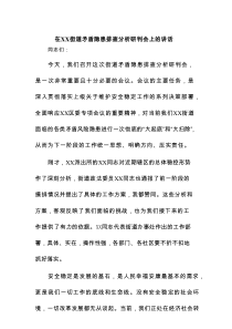 会议强调全面排查矛盾隐患,深入分析研判,加强部门协作,确保社会稳定,及时化解各类风险。公文包网友为您分享整理的“在XX街道矛盾隐患排查分析研判会上的讲话”范文资料,以供您参考学习之用,希望喜欢。
