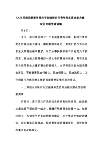 民族宗教事务局通过专题党课,强化新时代青年党员理想信念教育,提升政治能力,增强服务意识。下面是小编为您整理的XX市民族宗教事务局关于加强新时代青年党员政治能力建设的专题党课讲稿范例,仅供参考,希望对您有所帮助。