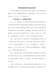 撰写领导讲话需紧扣主题明确观点结构清晰语言生动富有感染力如何让听众印象深刻?以下由网友整理分享的领导讲话的写作方法和技巧相关文档,供您学习参考,喜欢就分享吧!