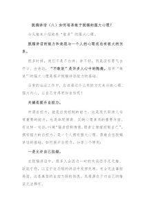 培养敢于脱稿讲话的心理需多加练习增强自信熟悉内容调整呼吸保持镇定正面思考句号以下是小编为您整理分享的“脱稿讲话八如何培养敢于脱稿的强大心理”相关内容,供您学习参考!