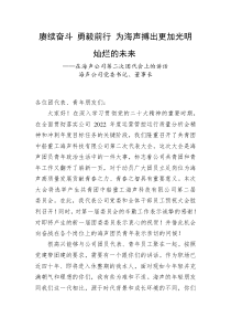 海声公司党委书记、董事长强调,青年员工要坚定信念,勇于创新,为公司发展贡献青春力量。以下由公文包网友为您分享的范文资料,供您参考学习之用。