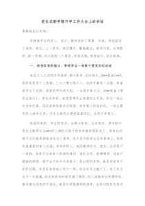 校长强调新学期需加强师资建设,提升教学质量,注重学生全面发展,确保校园安全稳定。以下是阿拉网友分享的“校长在新学期开学工作大会上的讲话”,供您学习参考,希望有所用途!