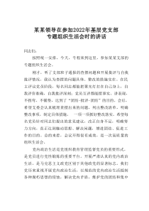 强调加强理论学习,提升组织力,密切联系群众,强化作风建设,推动基层工作创新与发展,如何更好落实?以下由网友整理分享的“某某领导在参加20XX年基层党支部专题组织生活会时的讲话”相关材料,便您学习参考,喜欢就分享给朋友吧!