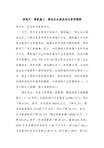 强调施工安全与质量控制的重要性,提升物业管理服务水平,促进房地产行业健康发展。以下是小编为您整理分享的“房地产建筑施工物业企业座谈会议讲话提纲”相关内容,供您学习参考!
