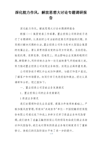 报告围绕深化能力作风建设与解放思想展开,通过调研探讨现状、问题及对策,如何进一步推动实践?以下是阿拉网友分享的“深化能力作风,解放思想大讨论专题调研报告”,供您学习参考,希望有所用途!
