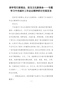 深入学习新理念,积极担当文化使命,推动城市发展,促进社会进步。下面是小编为您整理的深学笃行新理念,担当文化新使命——专题学习中央城市工作会议精神研讨交流发言范例,仅供参考,希望对您有所帮助。