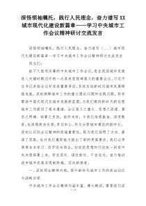 深入学习领会中央城市工作会议精神,贯彻以人民为中心的发展思想,推进城市现代化建设,提升居民生活质量。下面是小编为您整理的深悟领袖嘱托,践行人民理念,奋力谱写XX城市现代化建设新篇章——学习中央城市工作会议精神研讨交流发言范例,仅供参考,希望对您有所帮助。