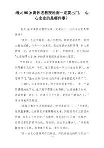 湘大96岁离休老教授沧南坚持外出,心中牵挂的是否是继续传播马克思主义思想?下面是网友整理编辑的湘大96岁离休老教授沧南一定要出门, 心心念念的是哪件事?相关范文,供大家参考学习,喜欢就下载支持!