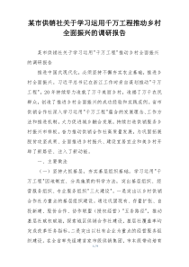 某市供销社通过学习运用千万工程经验,推动乡村产业发展,改善基础设施,提升农民生活水平,助力乡村振兴。下面网友分享多篇相关内容供您参考学习,希望有您喜欢的。