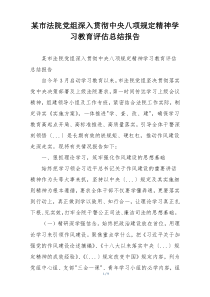 市法院党组认真落实中央八项规定精神,强化学习教育,严格评估总结,成效显著!以下由网友整理分享的某市法院党组深入贯彻中央八项规定精神学习教育评估总结报告相关文档,供您学习参考,喜欢就分享吧!