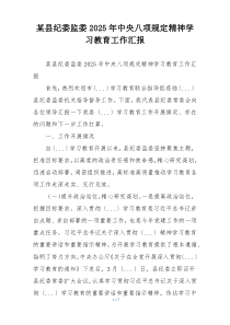 县纪委监委深入学习中央八项规定精神,强化纪律教育,提升干部廉洁意识,确保风清气正!以下是小编为您整理分享的“某县纪委监委2025年中央八项规定精神学习教育工作汇报”相关内容,供您学习参考!