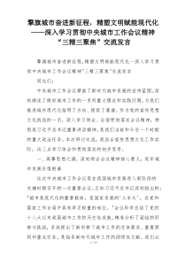 城市奋进新征程,精塑文明推动现代化建设,聚焦精准规划、精细管理、精心服务,如何更好落实会议精神?下面网友分享多篇相关内容供您参考学习,希望有您喜欢的。