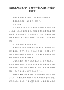 政协主席强调作风建设的重要性,指出要深入学习理论,加强自我修养,提升工作效能,推动事业发展。下面是网友整理编辑的政协主席在理论中心组学习作风建设研讨会的发言相关范文,供大家参考学习,喜欢就下载支持!