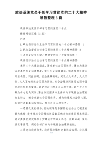 政法系统党员干部深入学习党的二十大精神,坚定信念,增强责任感,提升服务能力,为法治中国建设贡献力量!以下由网友整理分享的“政法系统党员干部学习贯彻党的二十大精神感悟整理3篇”相关材料,便您学习参考,喜欢就分享给朋友吧!