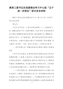 教育工委书记强调,需深化思想认识,加强组织领导,确保学习教育、问题整改等五个方面落实到位,如何更好推进?下面是小编为您整理的教育工委书记在党委理论学习中心组“五个进一步到位”研讨发言材料范例,仅供参考,希望对您有所帮助。