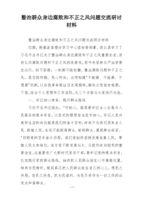 整治群众身边腐败和不正之风需加强监督体系建设,提升治理效能,确保政策落实到位。下面是网友整理编辑的整治群众身边腐败和不正之风问题交流研讨材料相关范文,供大家参考学习,喜欢就下载支持!