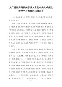 文广新旅局局长强调,要深入学习中央八项规定精神,强化作风建设,提升服务质量,确保廉洁自律。以下是小编为您整理分享的“文广新旅局局长关于深入贯彻中央八项规定精神学习教育的交流发言”相关内容,供您学习参考!
