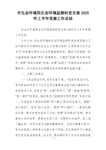 生态环境监测科党支部扎实推进党建工作,强化理论学习,提升队伍素质,增强服务意识,创新活动形式,成效显著,未来如何持续深化?下面是网友整理编辑的市生态环境局生态环境监测科党支部2025年上半年党建工作总结相关范文,供大家参考学习,喜欢就下载支持!