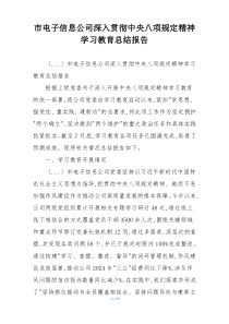 市电子信息公司深入贯彻中央八项规定精神,强化学习教育,提升员工廉洁自律意识,成效如何?以下由公文包网友为您分享的范文资料,供您参考学习之用。
