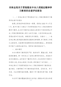 市林业局深入学习中央八项规定精神,开展自查自纠,强化作风建设,提升工作效能。以下由网友整理分享的市林业局关于贯彻落实中央八项规定精神学习教育的自查评估报告相关文档,供您学习参考,喜欢就分享吧!