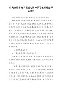 民政局深入学习中央八项规定精神,强化作风建设,提升服务效能,成效显著,振奋人心!以下由网友整理分享的市民政局中央八项规定精神学习教育总结评估报告相关文档,供您学习参考,喜欢就分享吧!