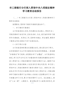 市工商银行分行积极落实中央八项规定精神,通过多形式学习教育活动,提升了员工纪律意识和职业素养。下面是网友整理分享的市工商银行分行深入贯彻中央八项规定精神学习教育总结报告相关资料,供大家学习参考,喜欢就分享吧!