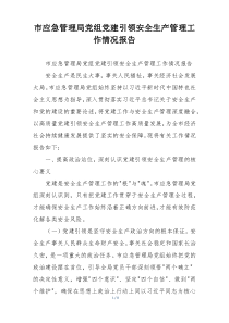 市应急管理局党组以党建为引领,强化安全生产管理,提升队伍素质,确保城市安全稳定。下面网友分享多篇相关内容供您参考学习,希望有您喜欢的。